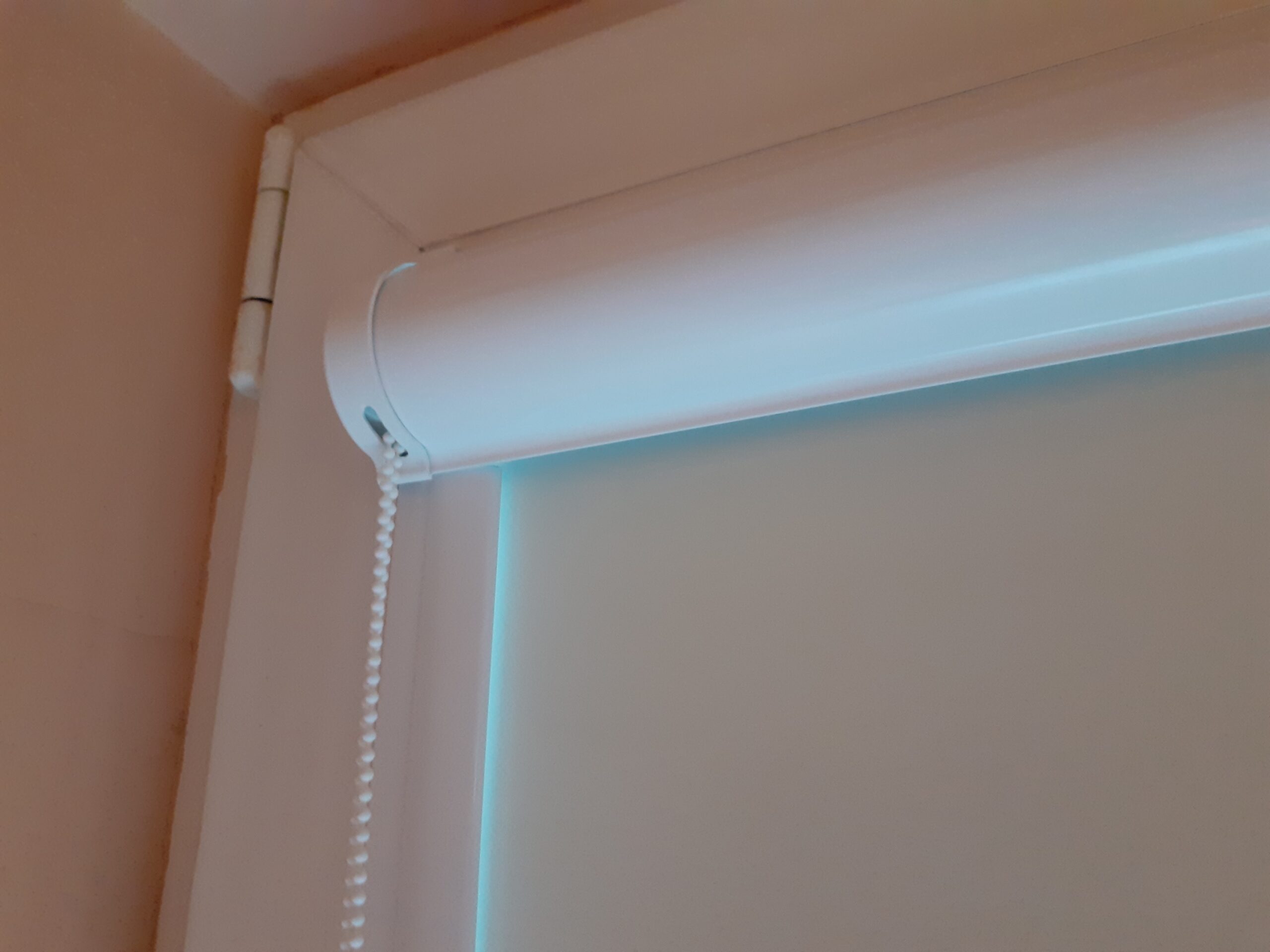 Kaseta z prowadnicami przestrzennymi. Mechanizm sprężynowy pozwala montować rolety w dolnej części skrzydła okiennego.